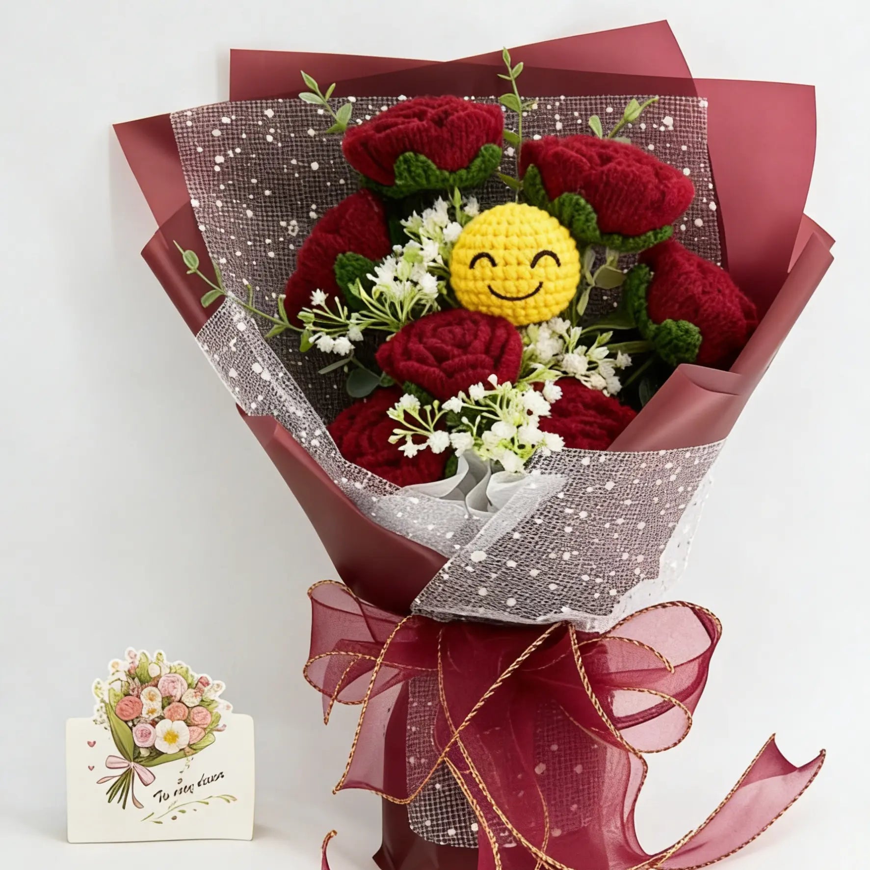 YSHomy Red Crochet Emoji Bouquet with Rose