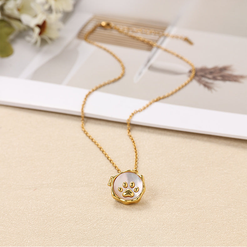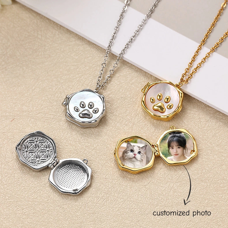 YSHomy Shell Cat Paw Necklace with Personalized Photo