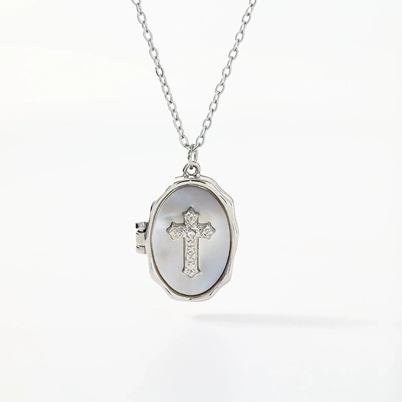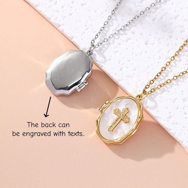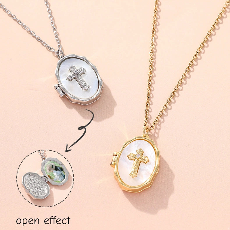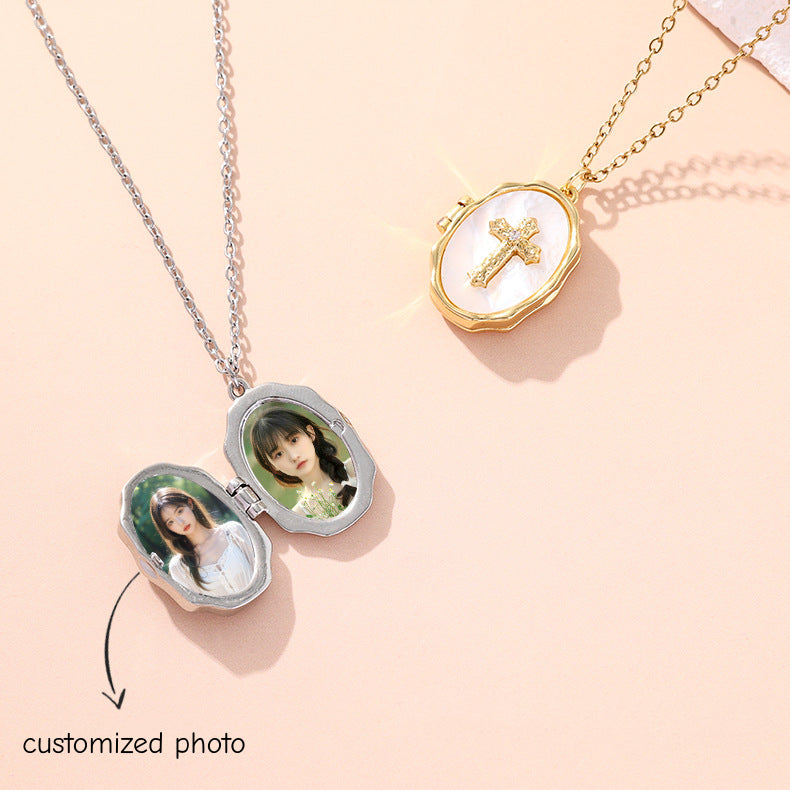 YSHomy Shell Cross Necklace with Personalized Photo & Text