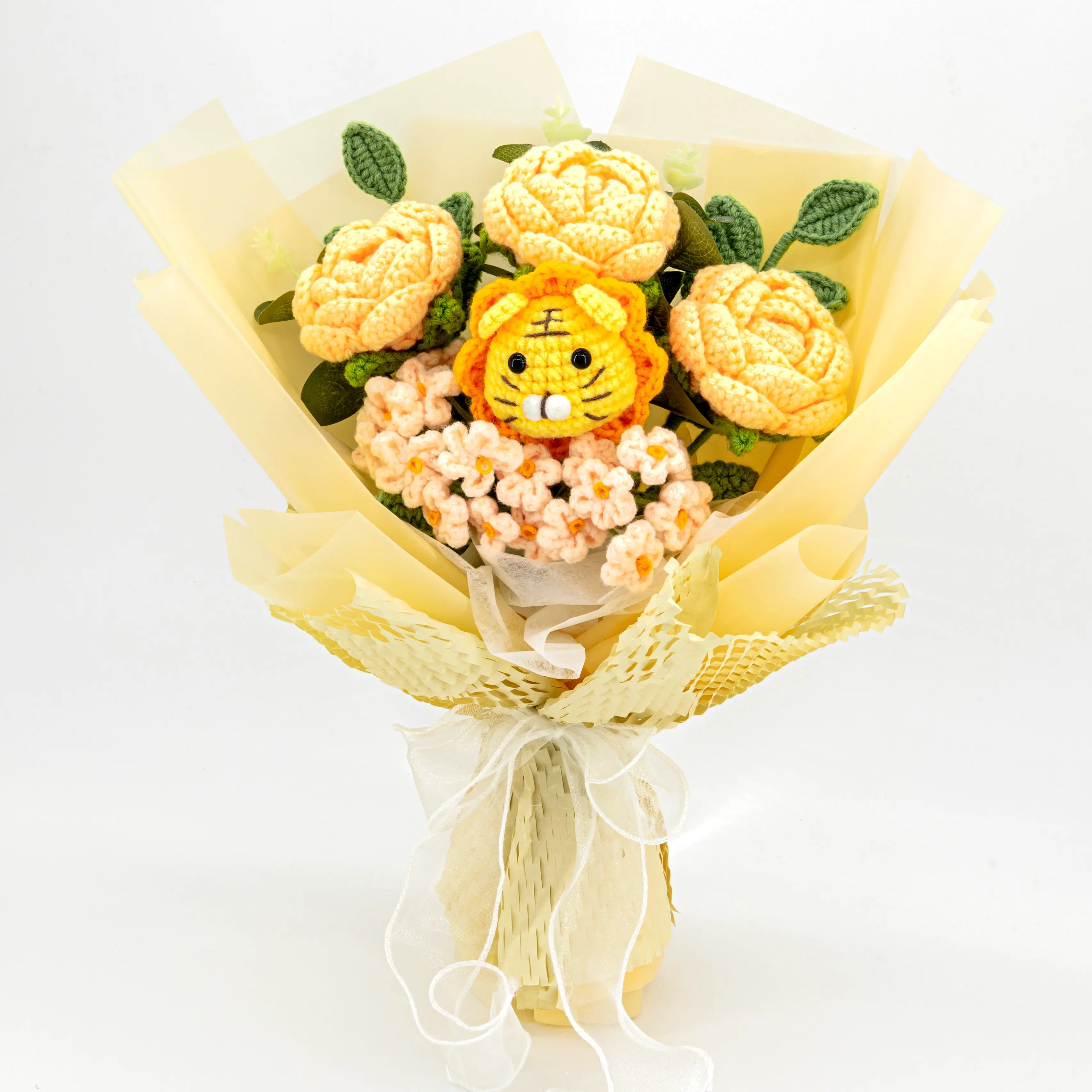 Bouquet Name: YSHomy Crochet Cute Lion & Yellow Rose Bouquet